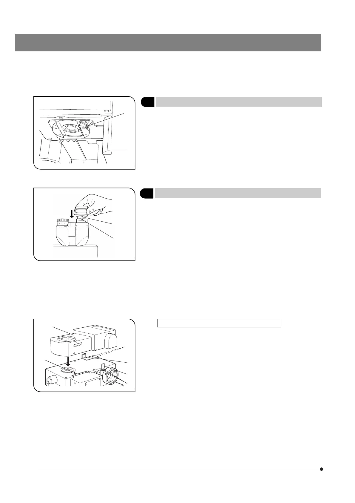1. Loosen the revolving nosepiece clamping screw 1 using the Allen screw-