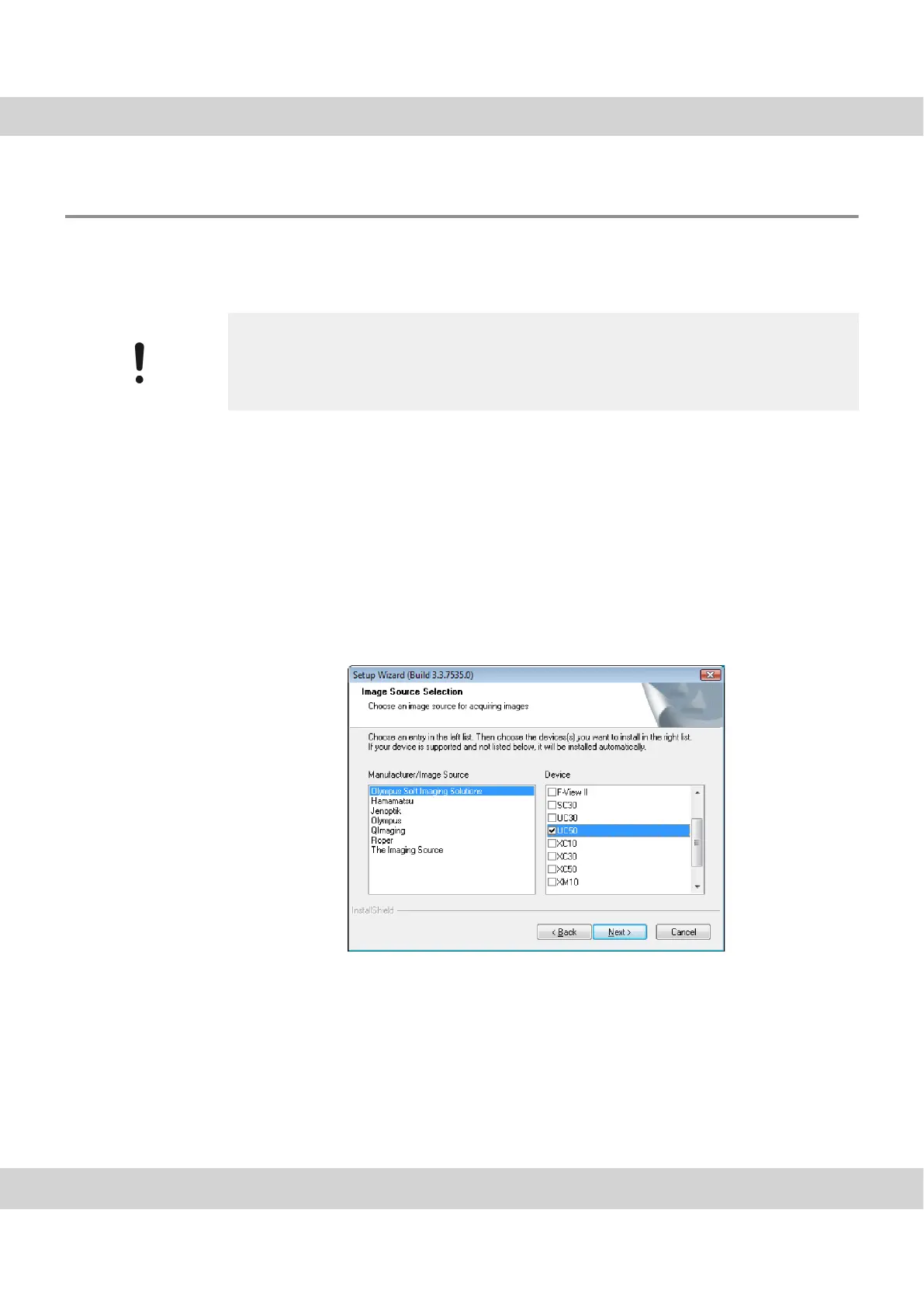 4) In the Image Source Selection dialog box, select the Olympus Soft Imaging