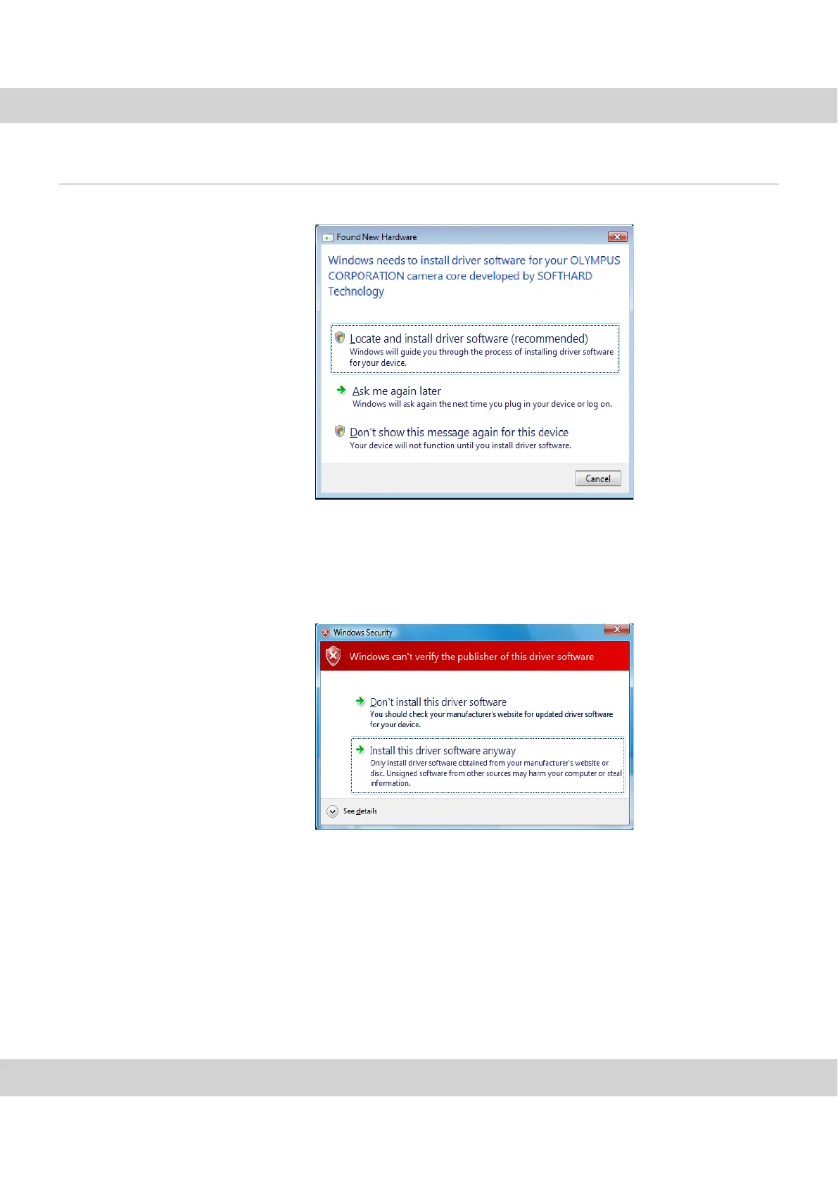 5) The following dialog box shows the correct camera driver Olympus Soft