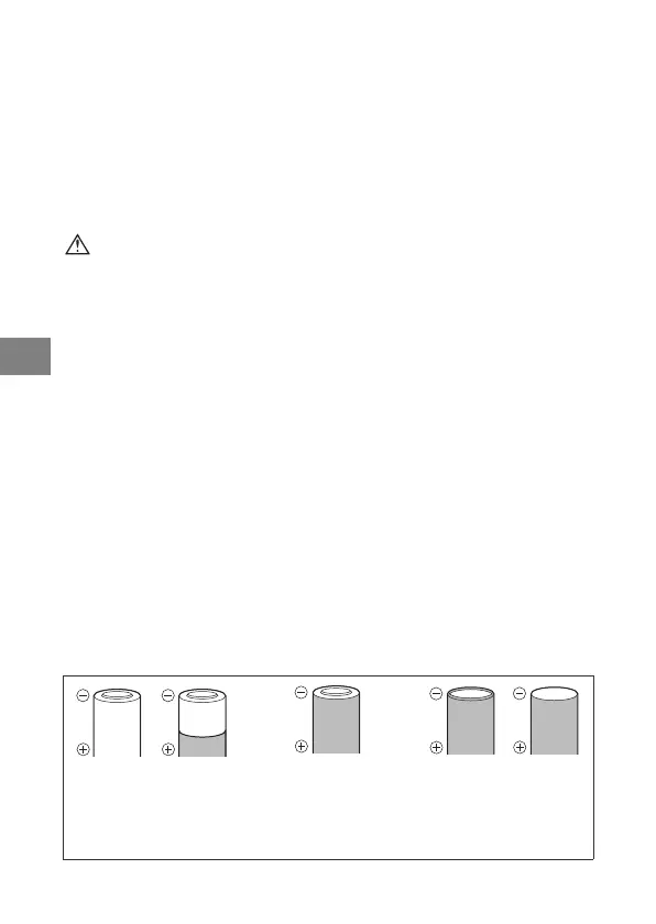 • Niemals gleichzeitig Batterien unterschiedlicher Ausführung (neue