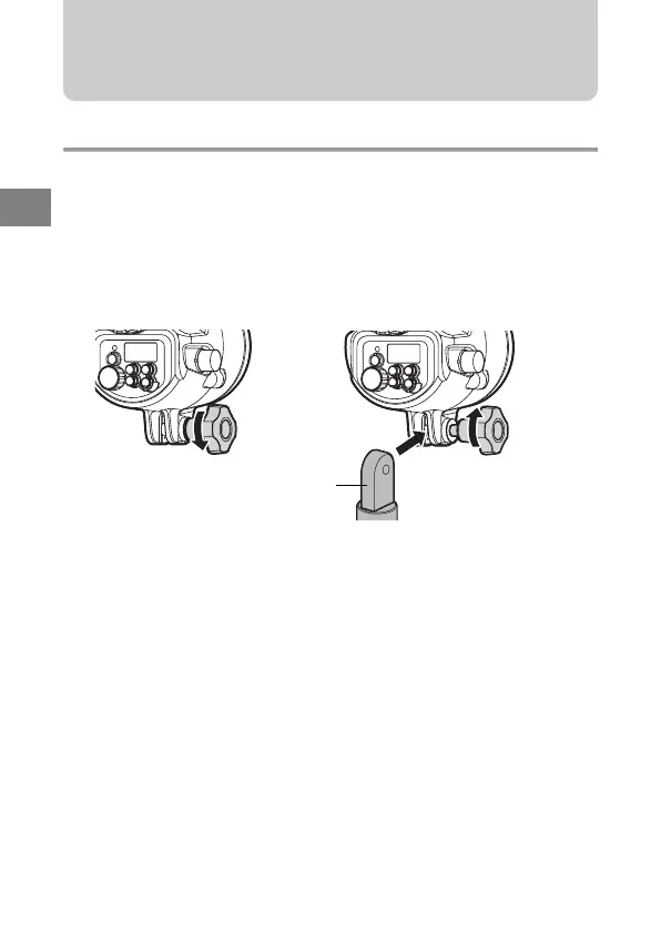 アームに本機を取り付けます。カメラ側に取り付けるときは、アームに
