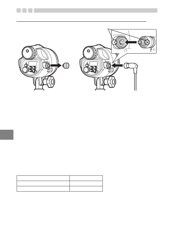 • 핫 슈 케이블(별매) 연결에 관한 자세한 내용은 카메라의 수중 하우