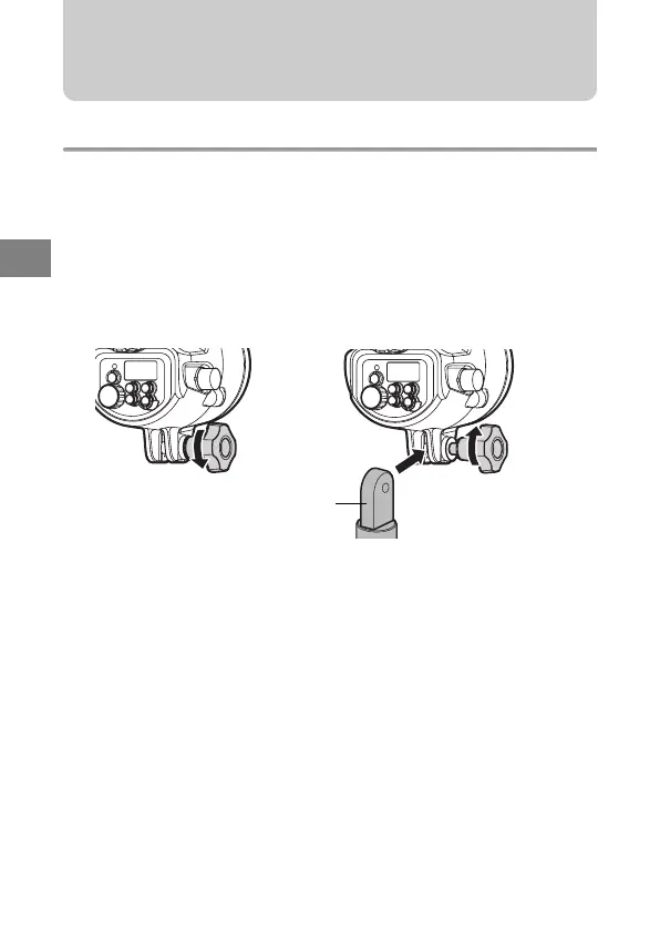 Attach the flash to the arm. When attaching the arm to the camera, make