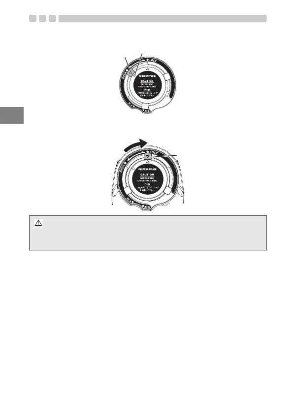6 Align the round mark and “a” on the battery cap with the OPEN( position,