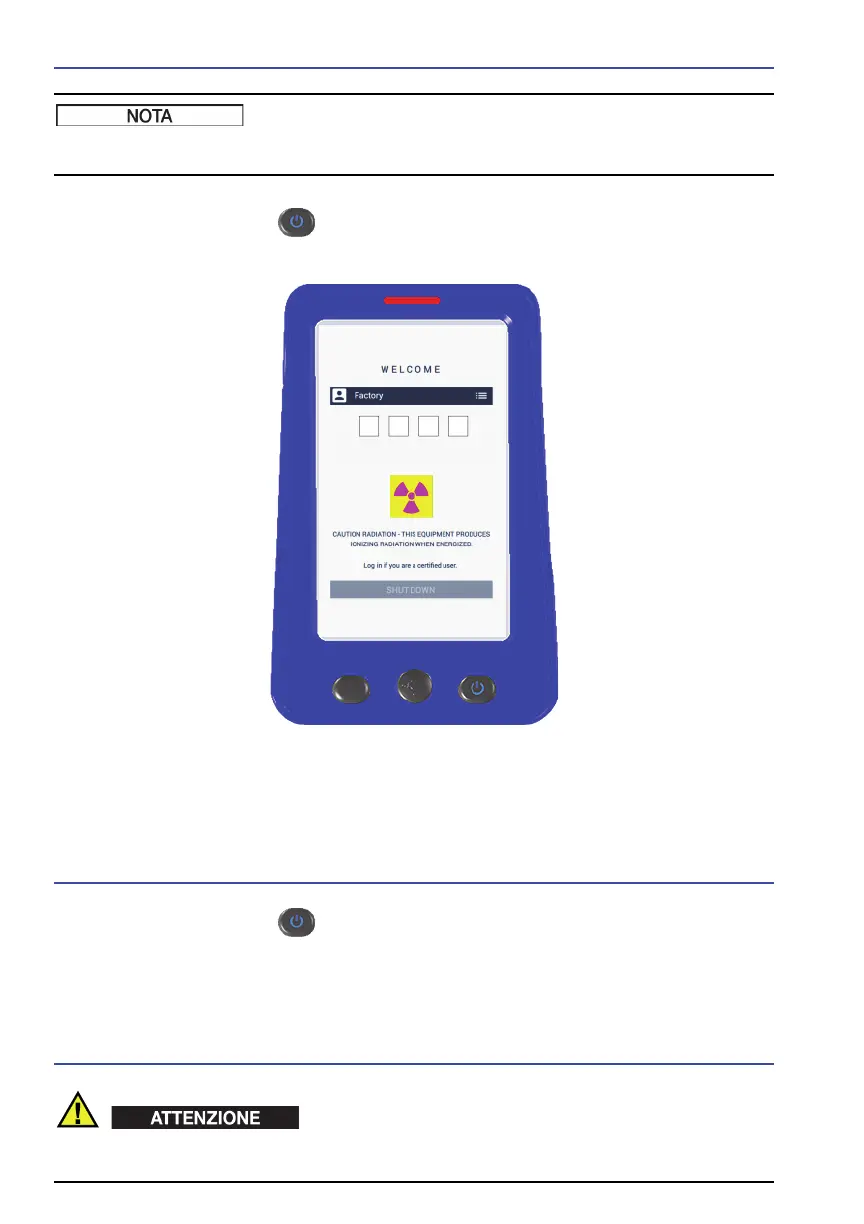 Il tasto ON/OFF non attiva il tubo a raggi X. Il tubo a raggi X sarà attivato solo in seguito