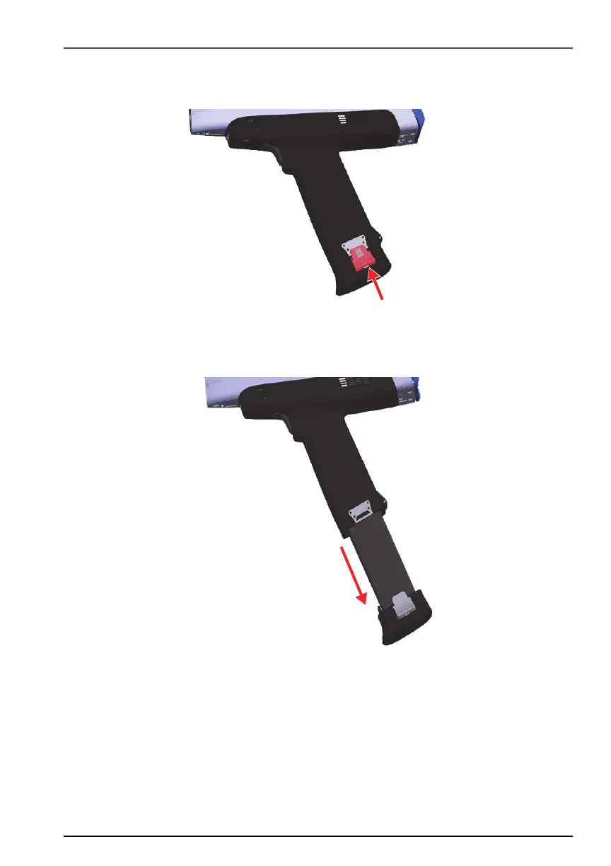 1. Segure a pega do Vanta e pressione os dois botões de liberação da bateria. Os botões estão
