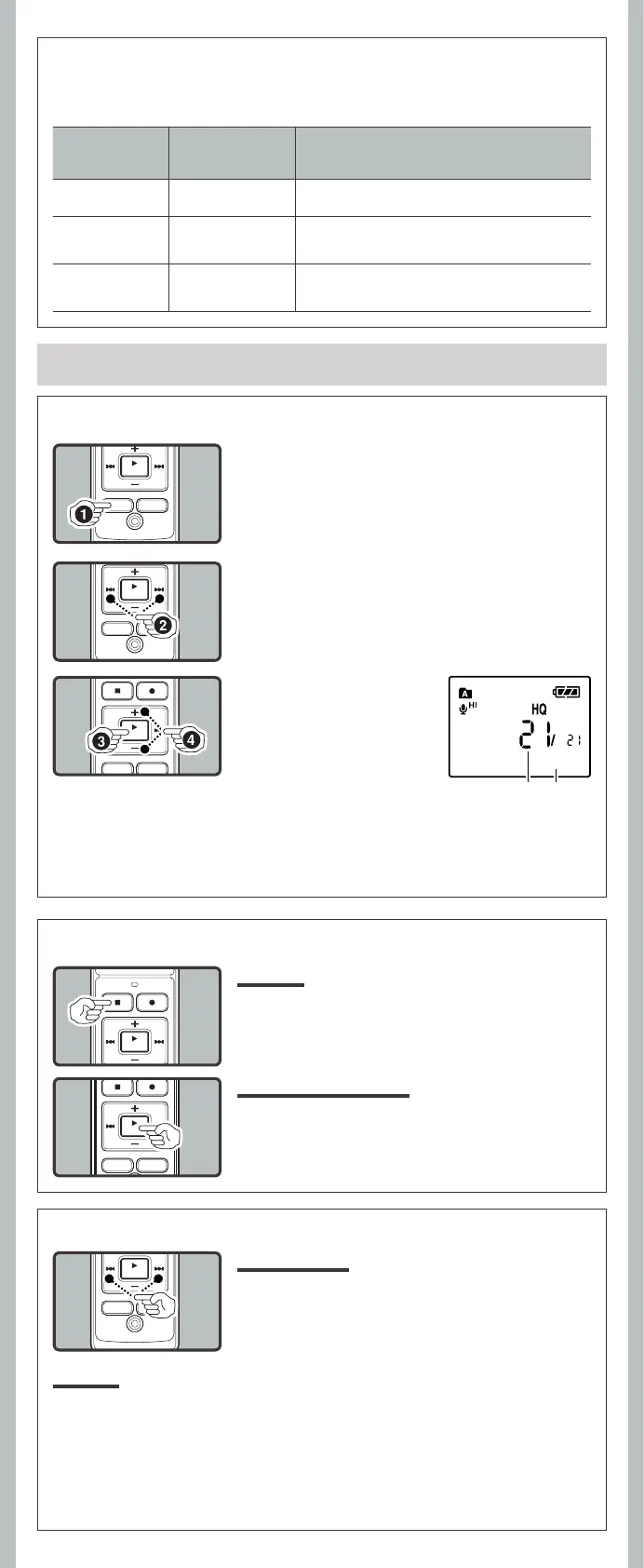• The recorder pauses when it reaches to the end of the le during fast forwarding or fast rewinding.