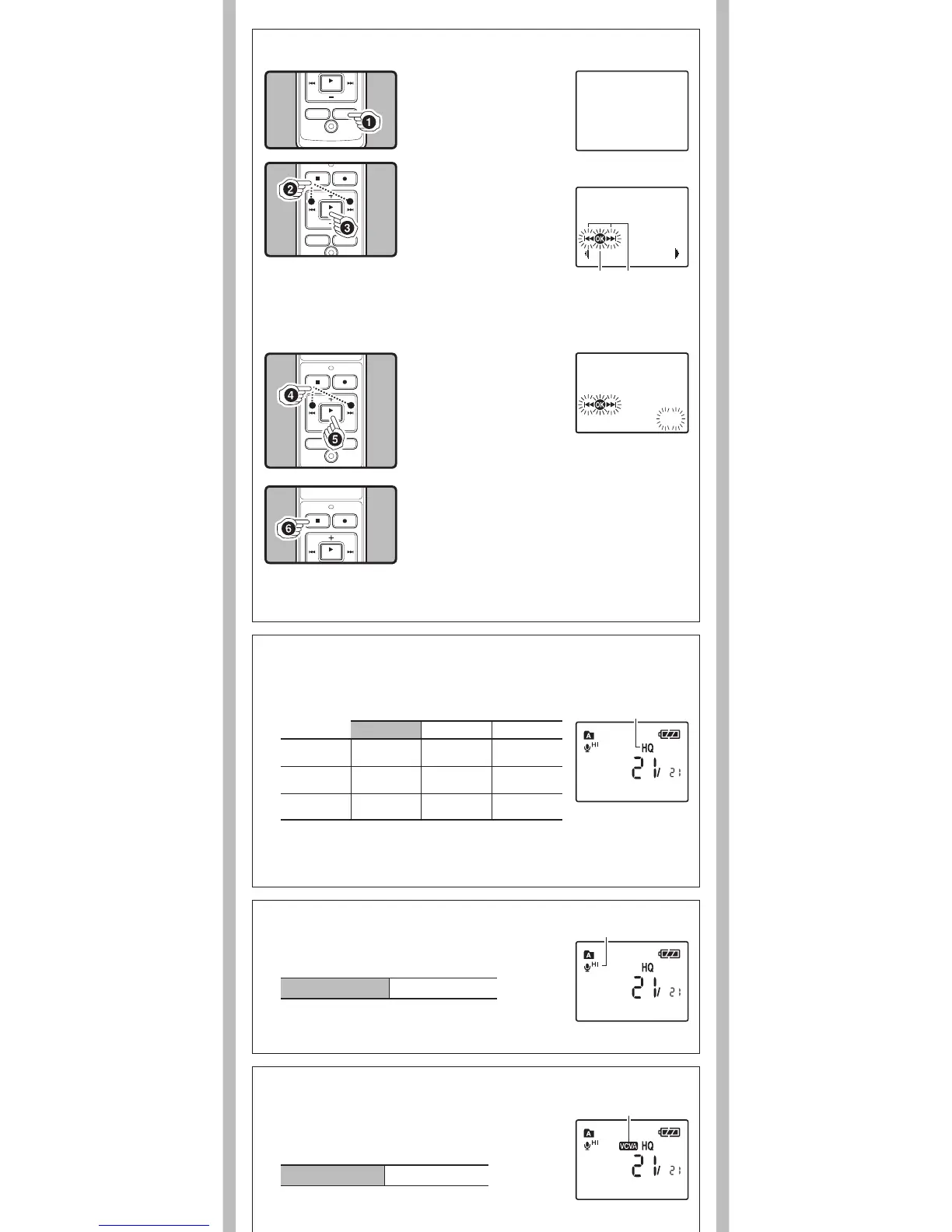 The recording mode can be chosen from [HQ] (high quality sound recording), [SP] (standard