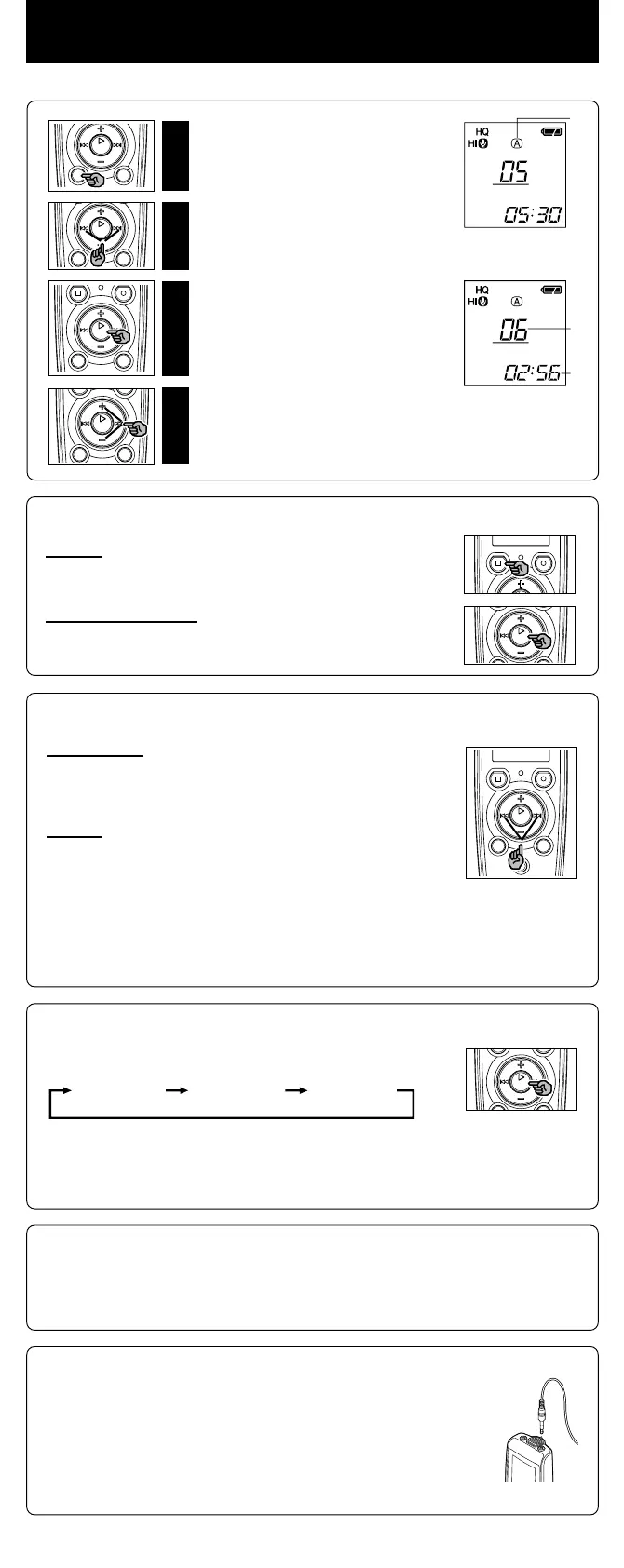 pause at the beginning of the file. If you do not release the 0 button, the recorder will continue rewinding.
