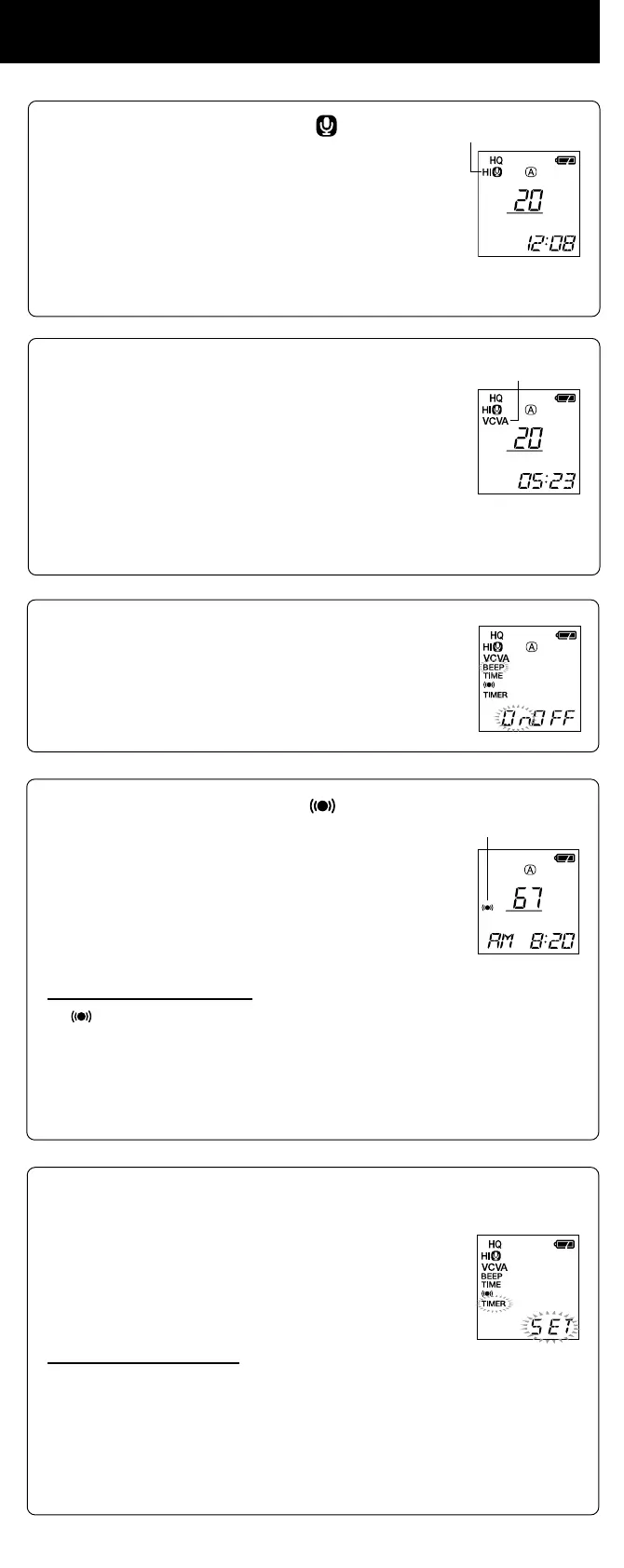 s During recording, use the + and – buttons to adjust the VCVA level in 15 levels.