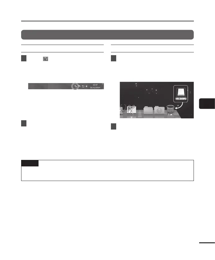 • To prevent the risk of data damage, never disconnect the voice recorder from the USB
