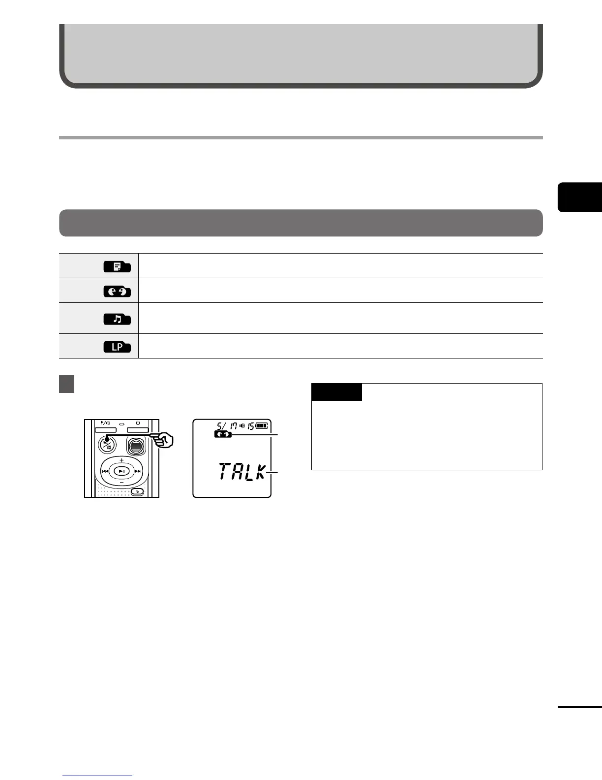 You can select from four recording scenes on this voice recorder - [MEMO], [TALK], [MUSIC],