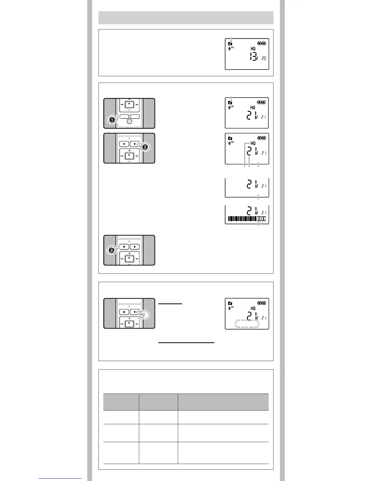 • Up to a total of 200 les can be recorded in each folder.