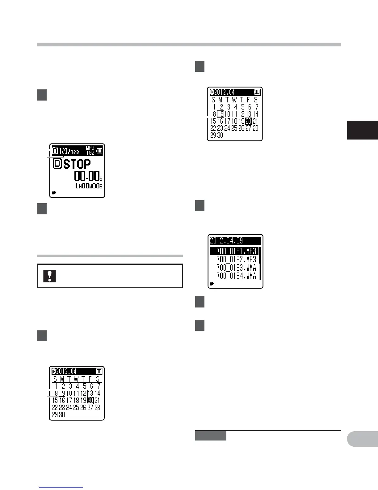 • Dates with recorded files are shown