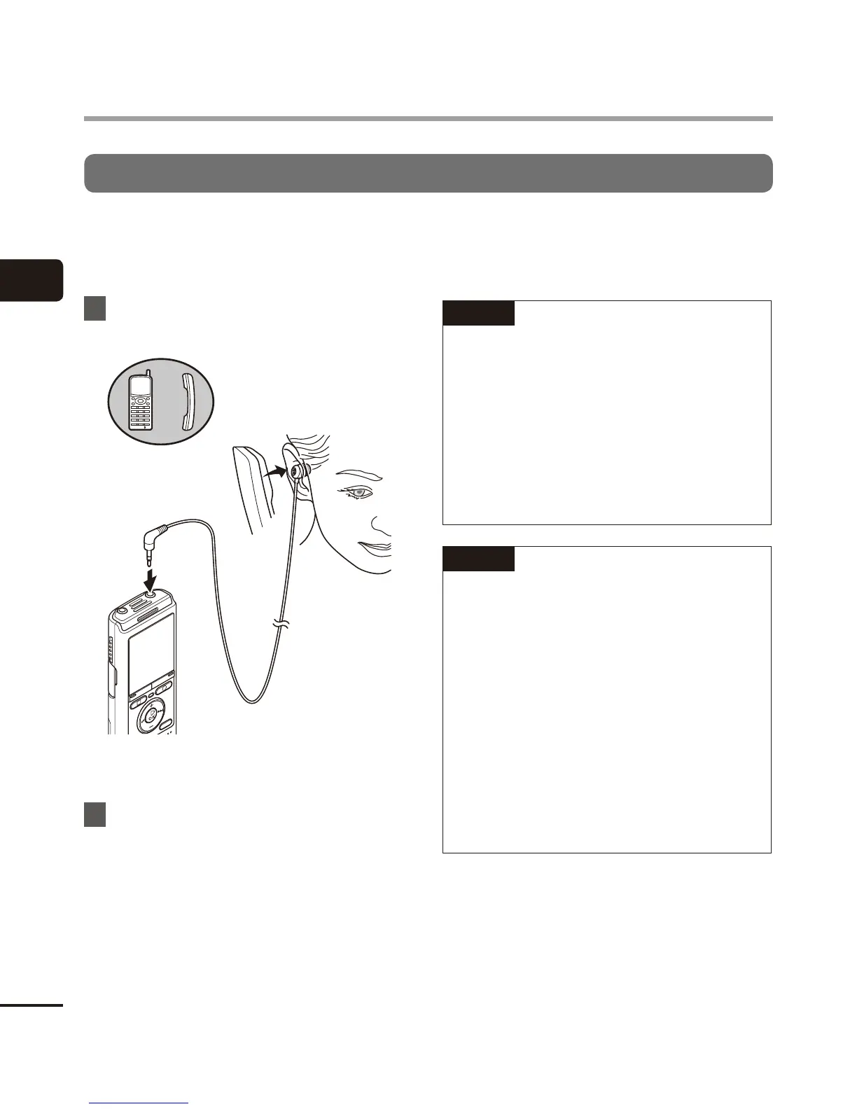 the voice recorder’s MIC jack. Do not plug or unplug devices into voice recorder jacks while