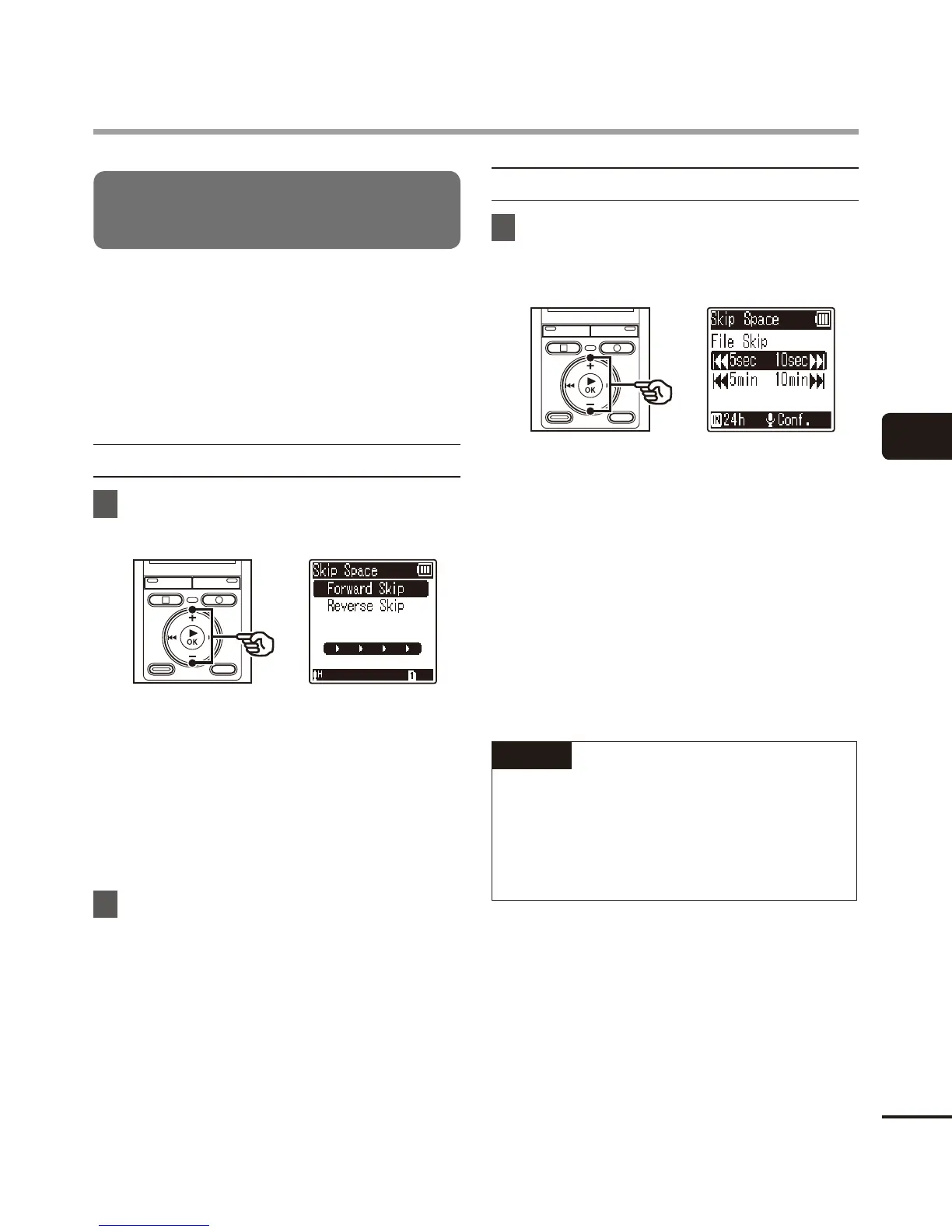 [File Skip], [1 sec. Skip] to