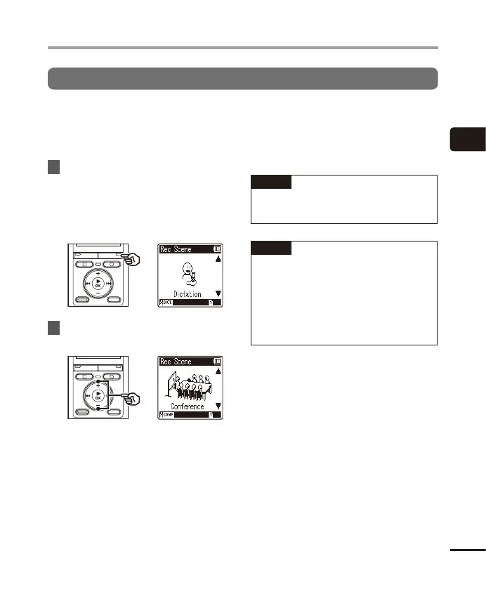 The voice recorder has preregistered templates of optimum settings tailored to various