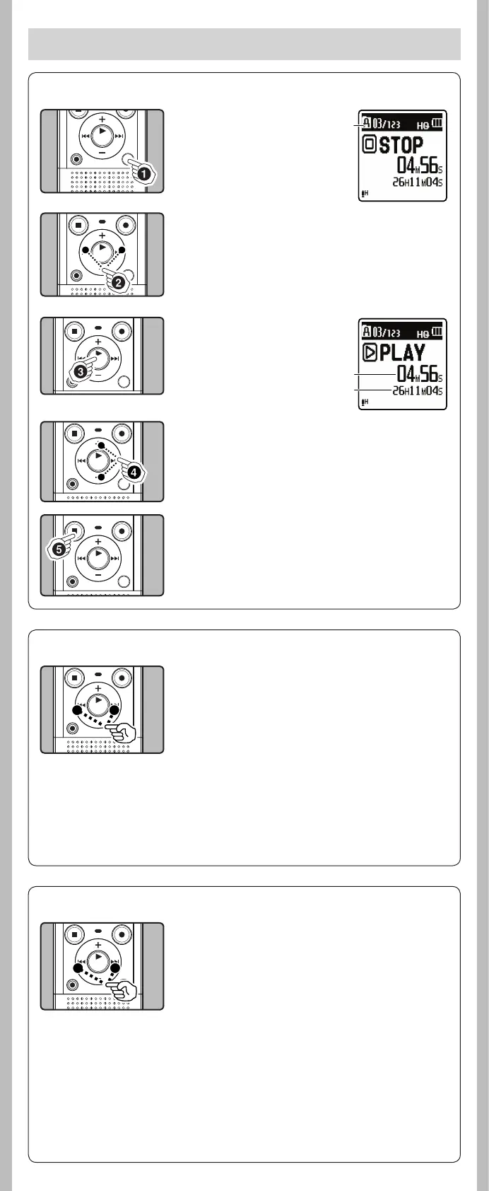 • When you skip to the beginning of the le during playback, the recorder will start playback at the
