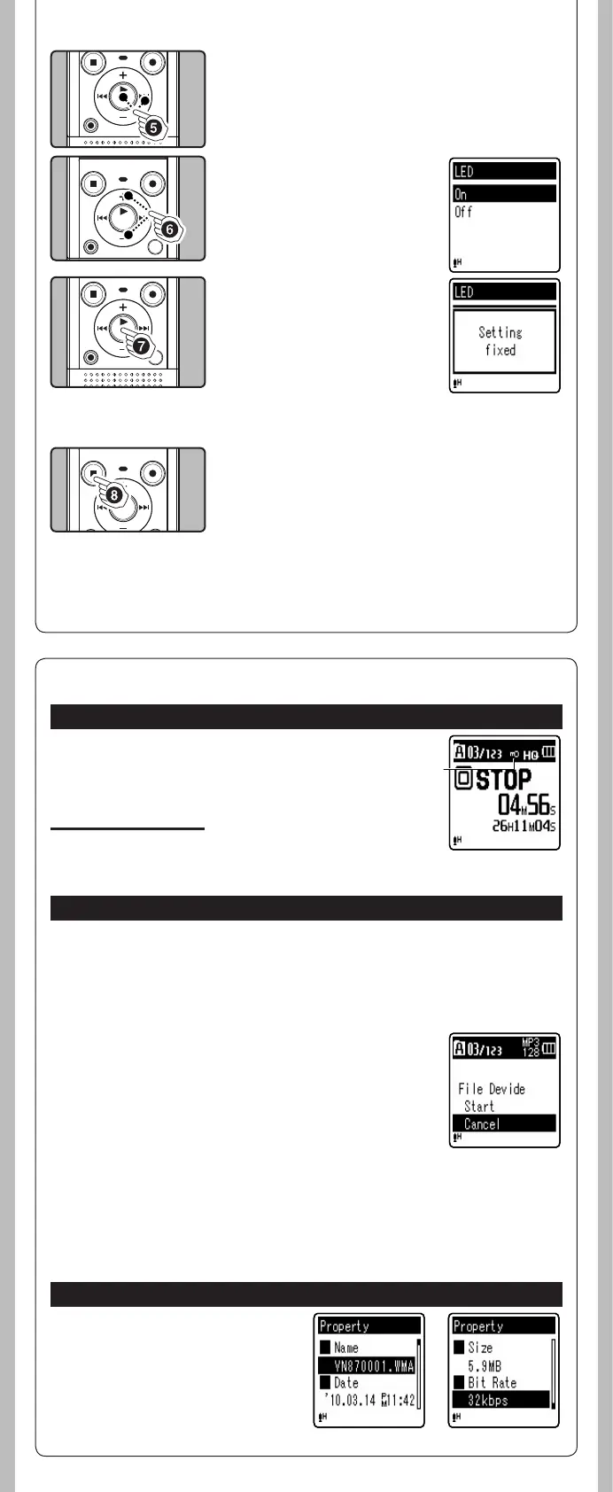 • The recorder cannot divide les when the number of les in the folder exceeds 198.