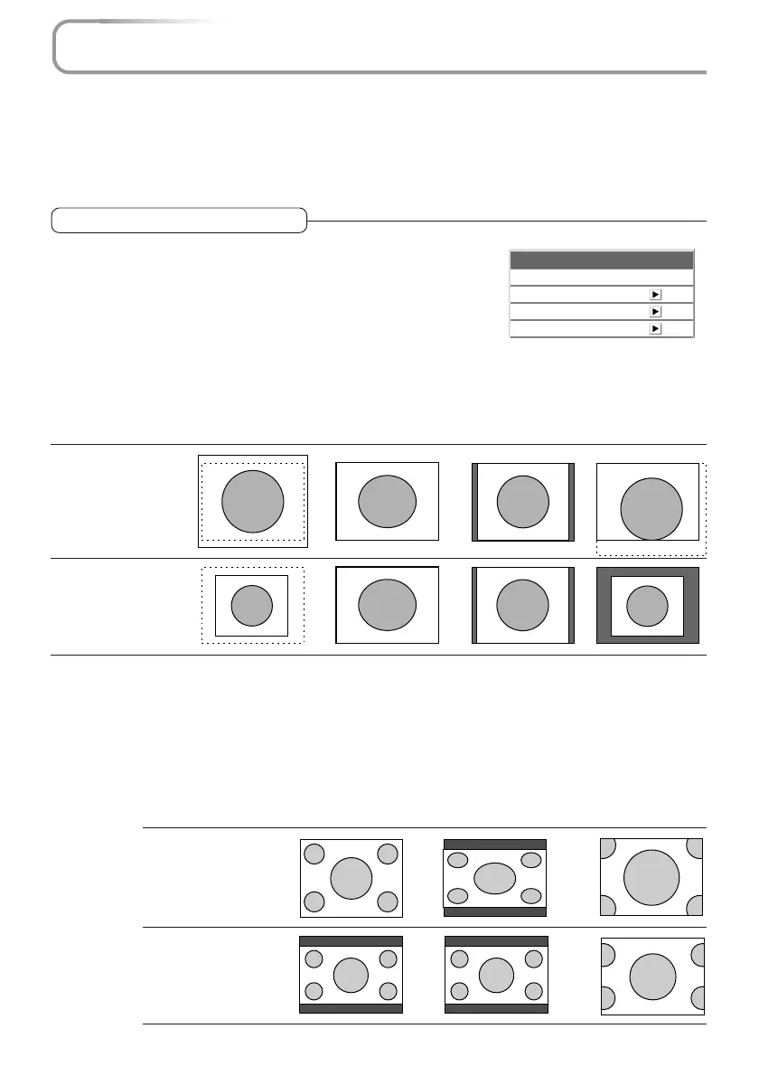 Auto ............ Automatically enlarges or reduces the image to project a full screen in a ratio of 4:3