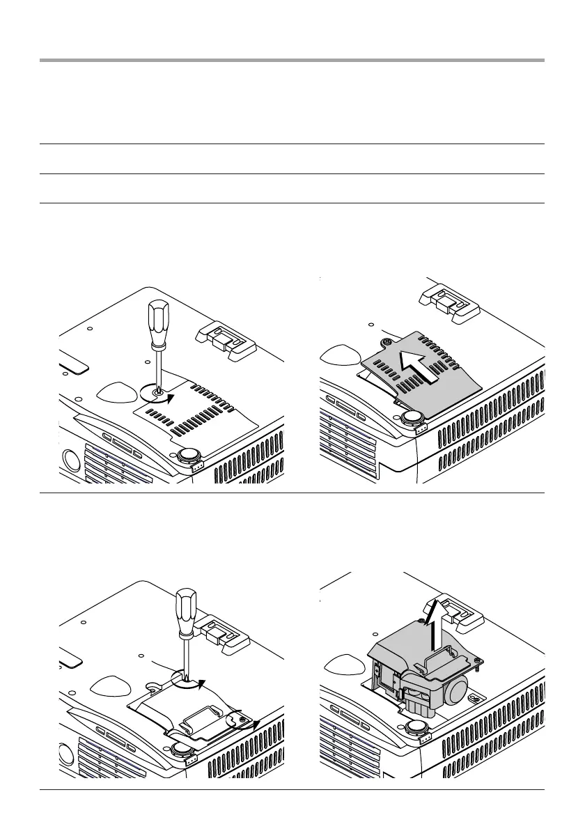(1) Turn the 2 screws that fasten the lamp cartridge
