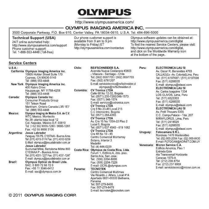 Olympus VR-310 - SPECIFICATIONS; Lithium-ion Battery Specifications; USB AC Adapter Specifications