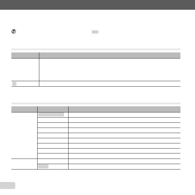 Restores the following menu functions to the default settings.