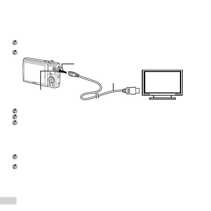 2 Connect the camera to the TV using an HDMI cable. “Using an HDMI cable” (p. 46)