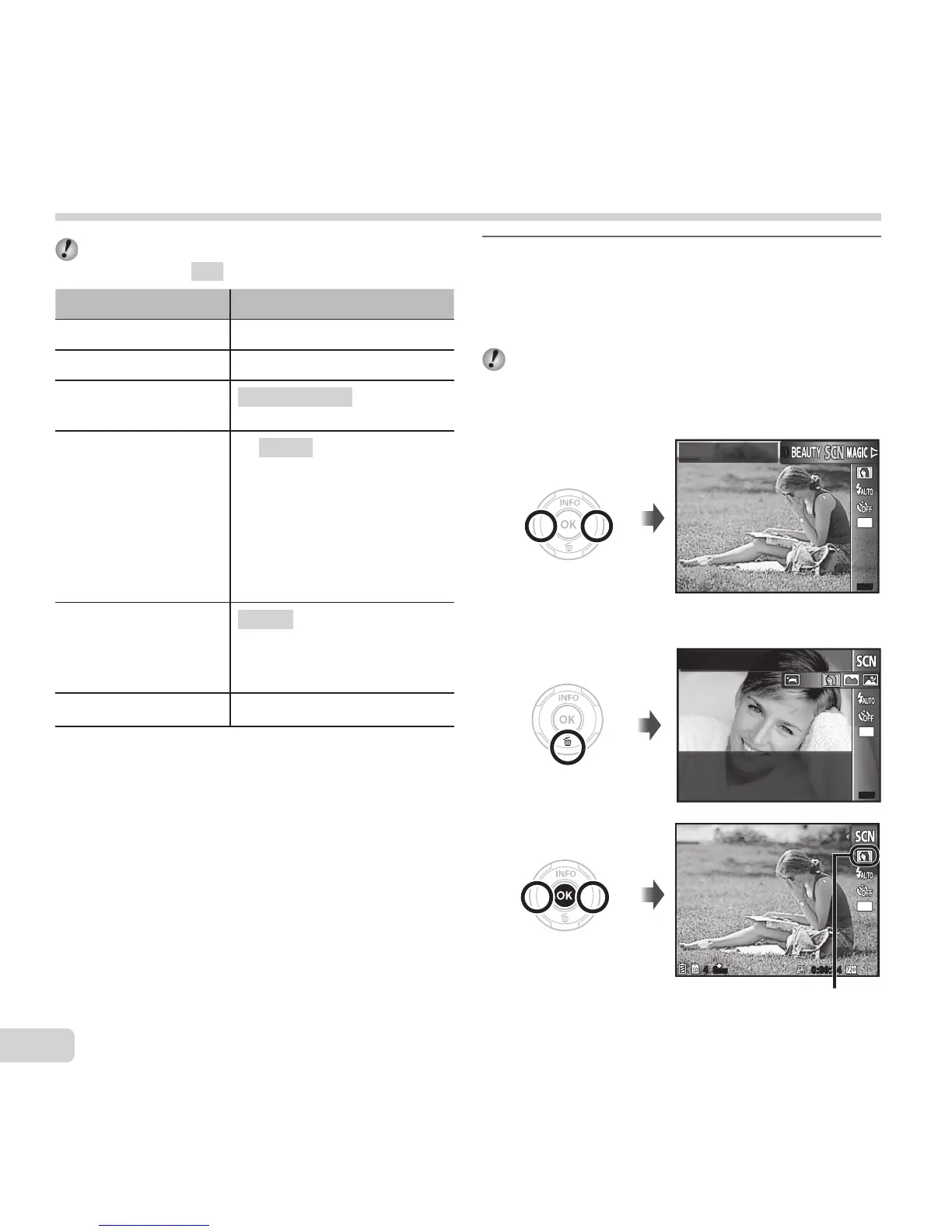 ● “List of settings available in each shooting mode”