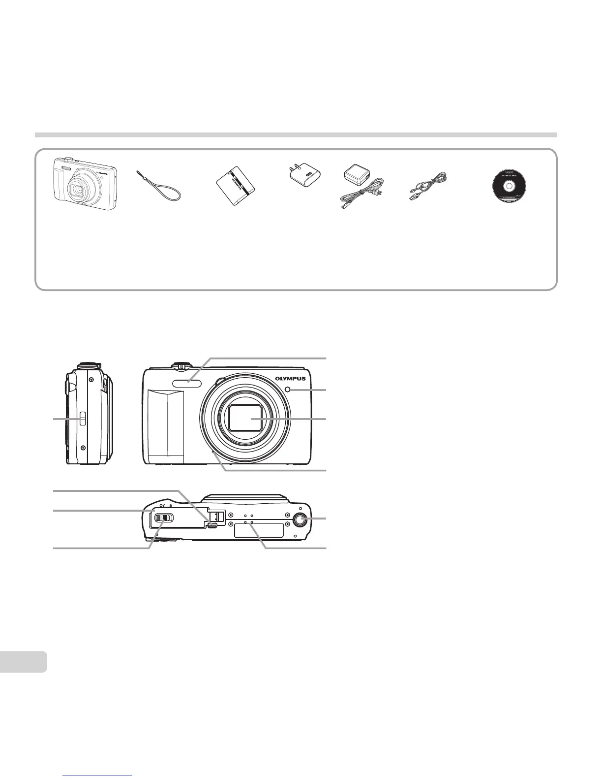 Olympus VR-370 - Getting Started with Your Olympus Camera; Checking Package Contents; Identifying Camera Parts