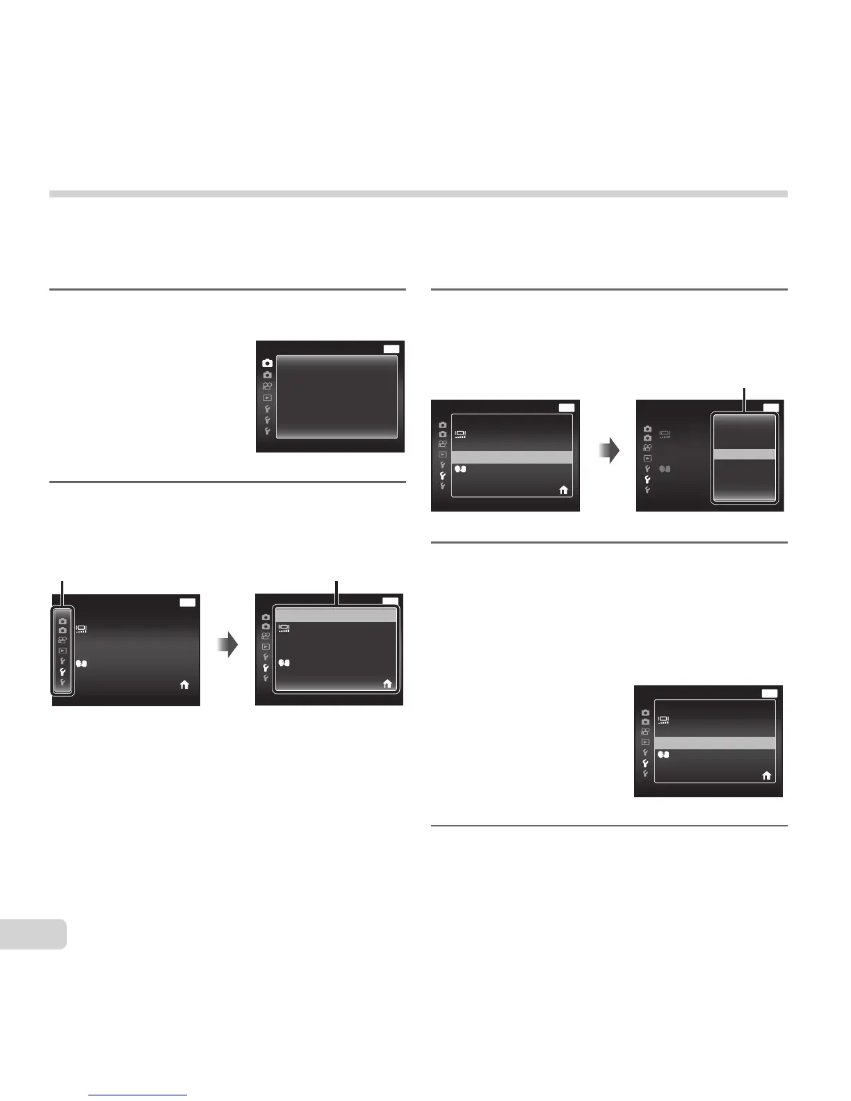 Press the button during shooting or playback to display the setup menu.