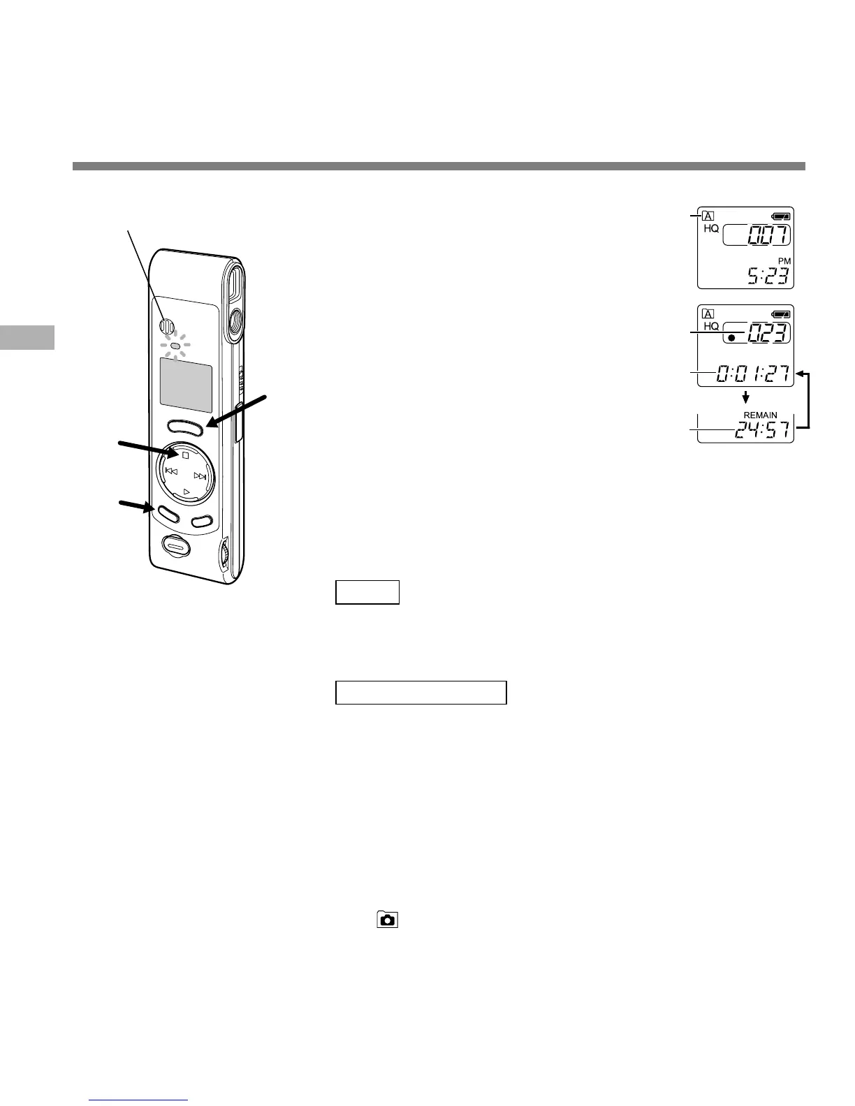 • When the remaining recording time becomes 1 minute or less, the record indicator lamp flashes.