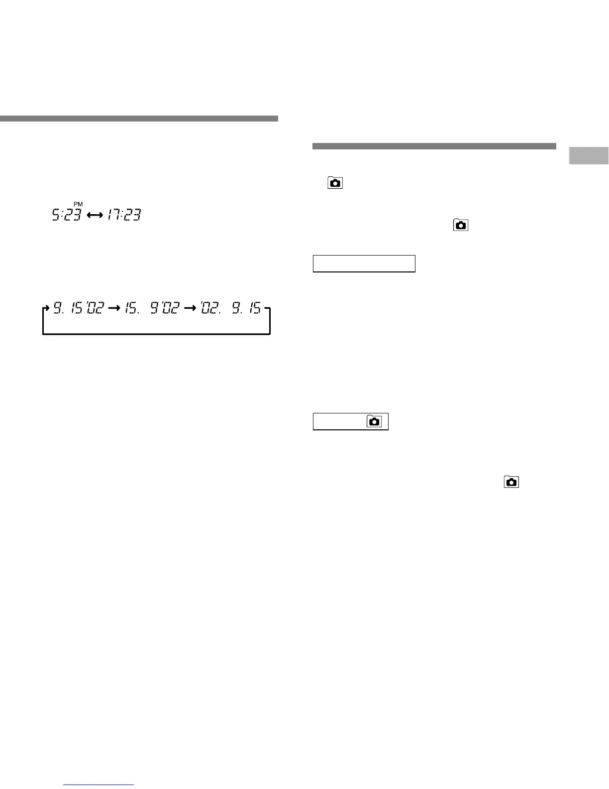 Réglage de l’heure/date (TIME) / Remarques sur les dossiers