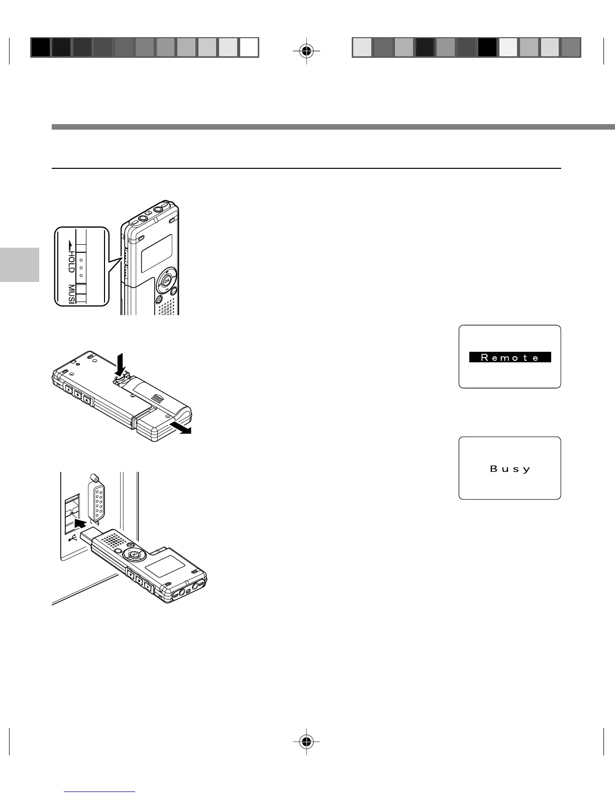 While transmitting data, “Busy” is displayed, and the record/play