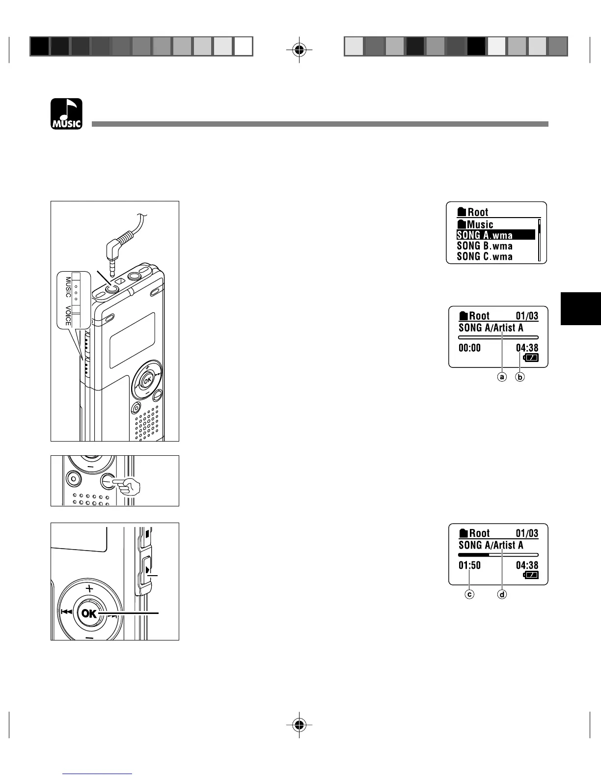 player, you need to transfer (copy) the corresponding music files from the PC to this recorder’s