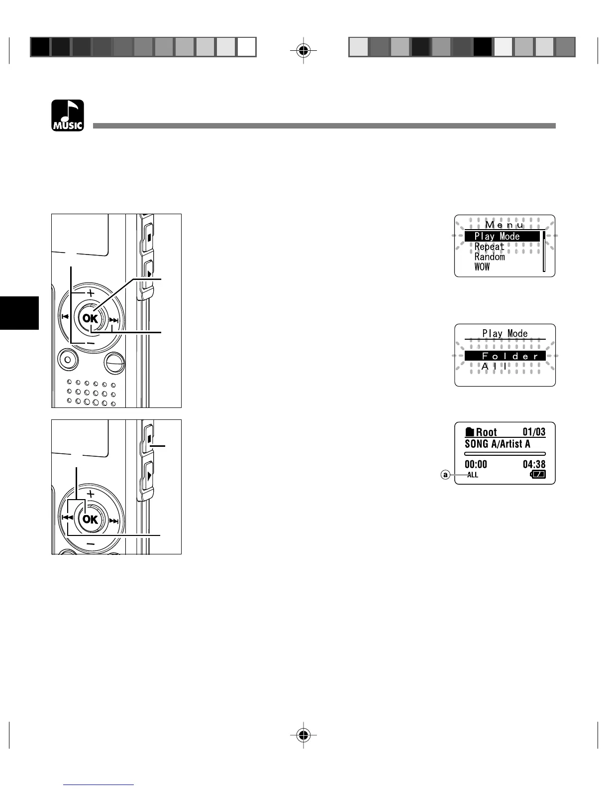 You can select either playing the tracks in a folder or playing all the tracks recorded in this