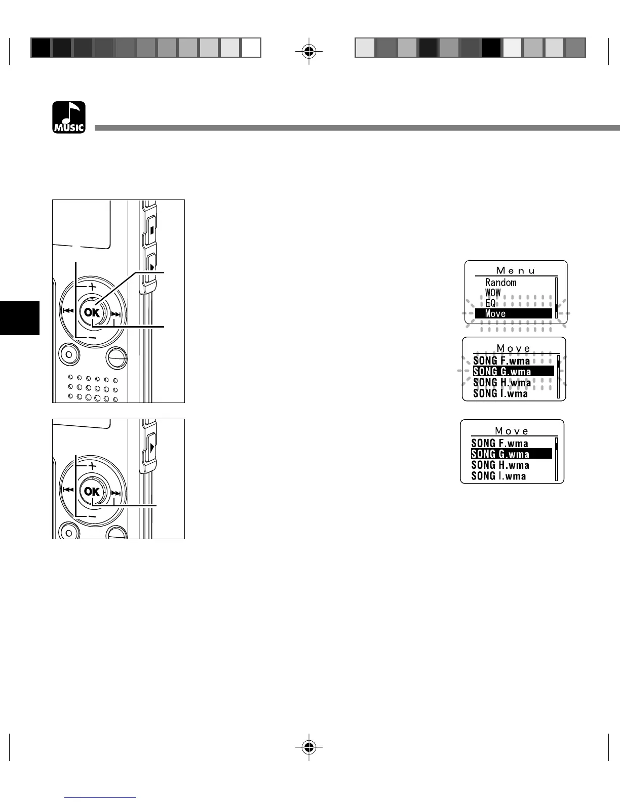 You can change the playback order of music files on the recorder.