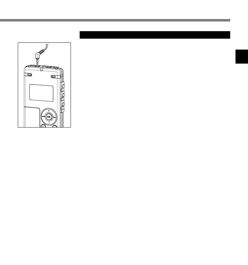 Connect the earphone to the EAR jack on the recorder