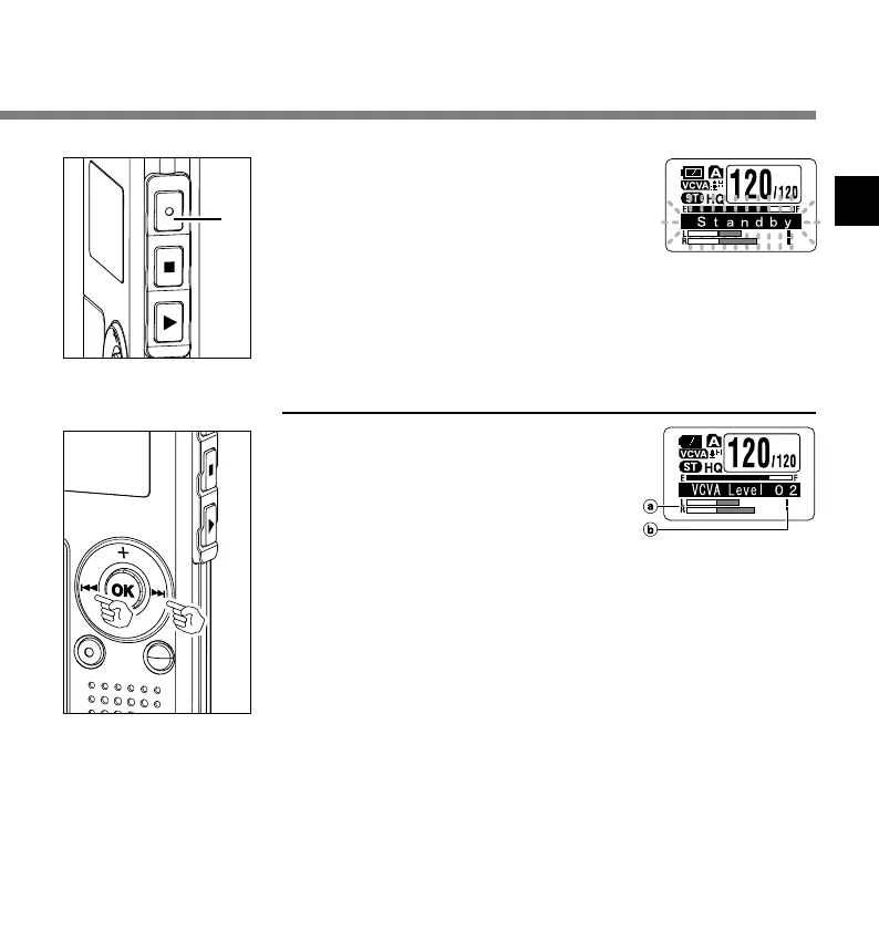 • El nivel de activación para el inicio/parada también depende del modo de sensibilidad de micrófono