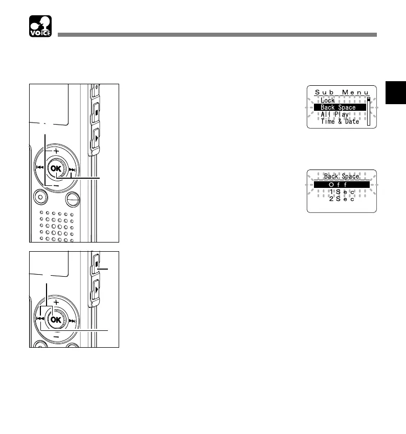 Para facilitar la revisión de un archivo de voz, puede ajustar un Salto Atrás Automático de 1 o 2