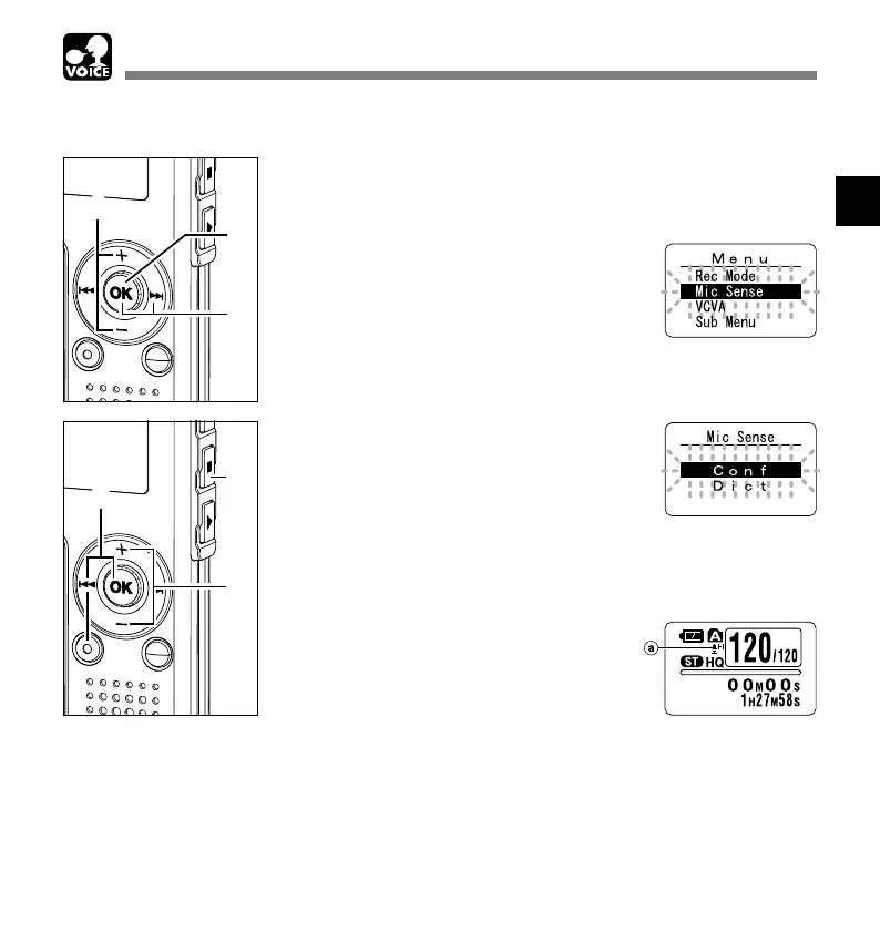 • When the speakers voice is to be recorded clearly, set to Dict (dictation) mode and move the built-in stereo