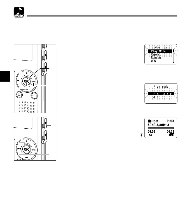 Puede seleccionar reproducir las pistas de una carpeta o reproducir todas las pistas grabadas