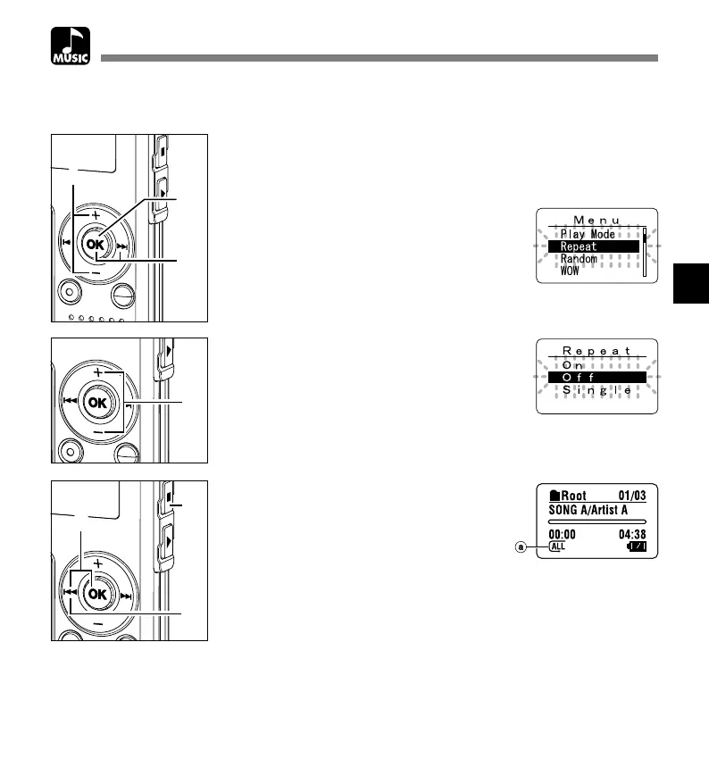 You can set the repeat playback of the music files within the range set in “Play Mode” (☞ P.58).