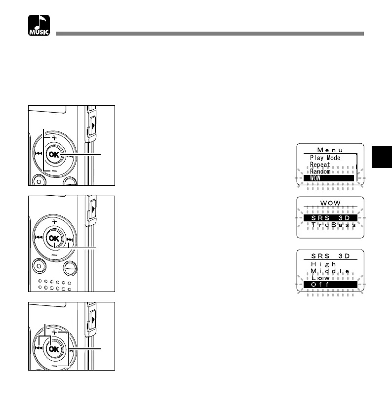 quality. The level of the surround effect (SRS 3D) and the bass effect (TruBass) may be individually