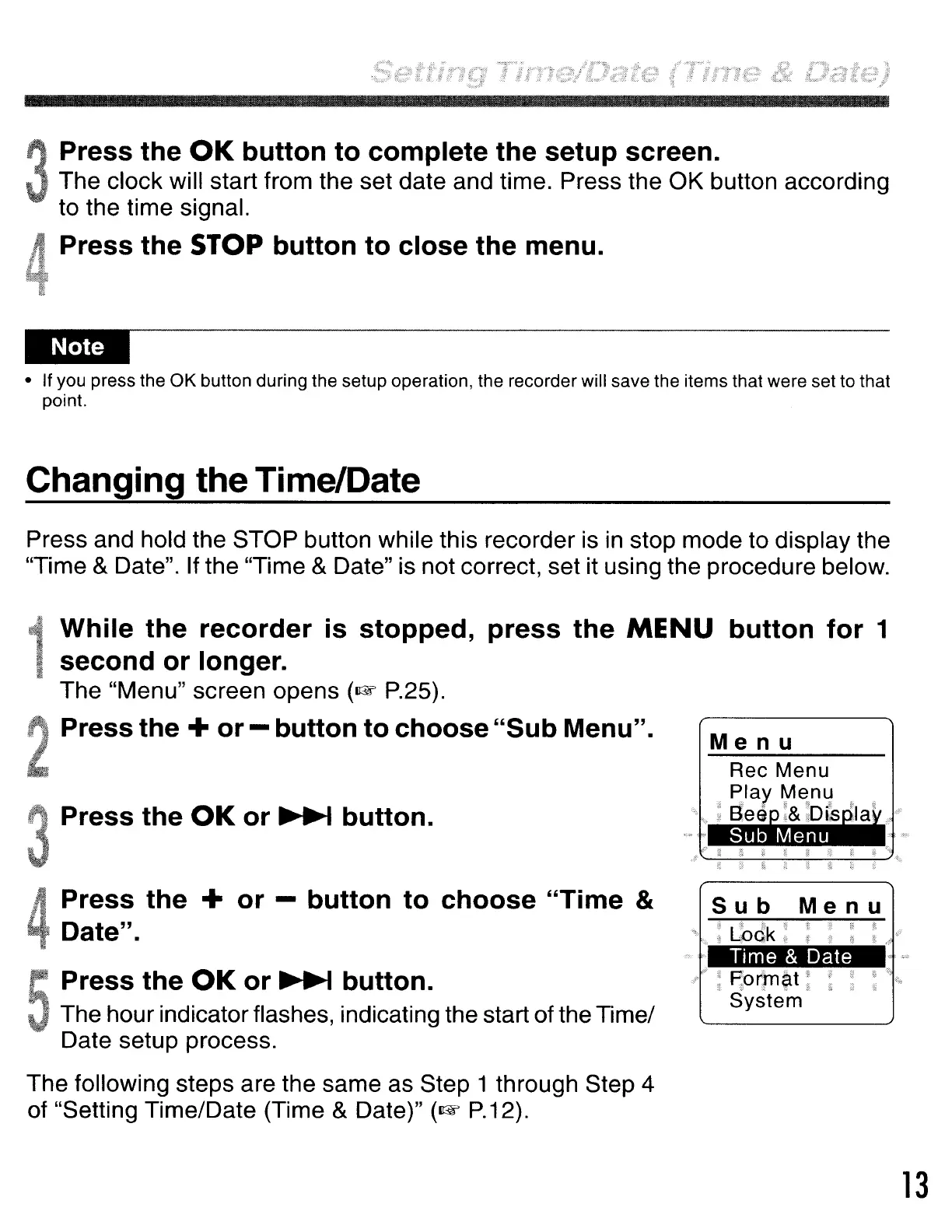 &Date". If the "Time &Date" is not correct, set it using the procedure below.