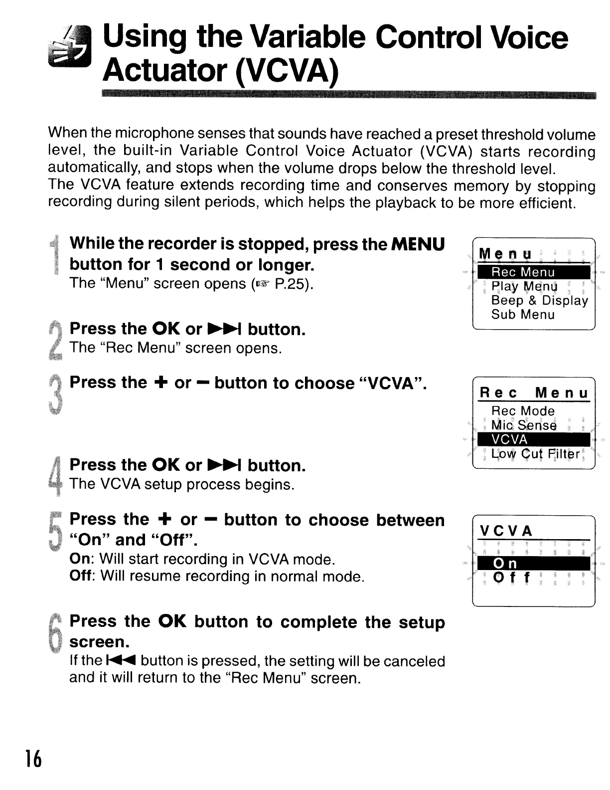 level, the built-in Variable Control Voice Actuator (VCVA) starts recording