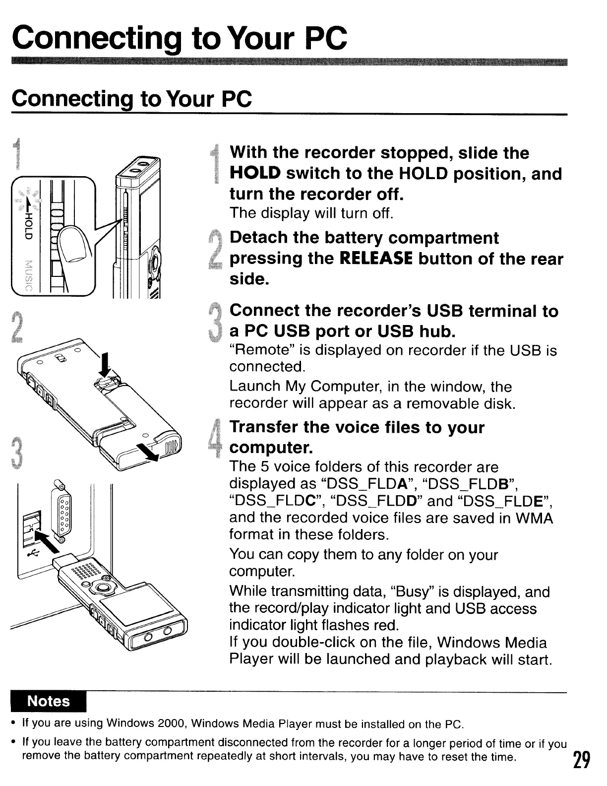 • If you leave the battery compartment disconnected from the recorder for a longer period of time or if you