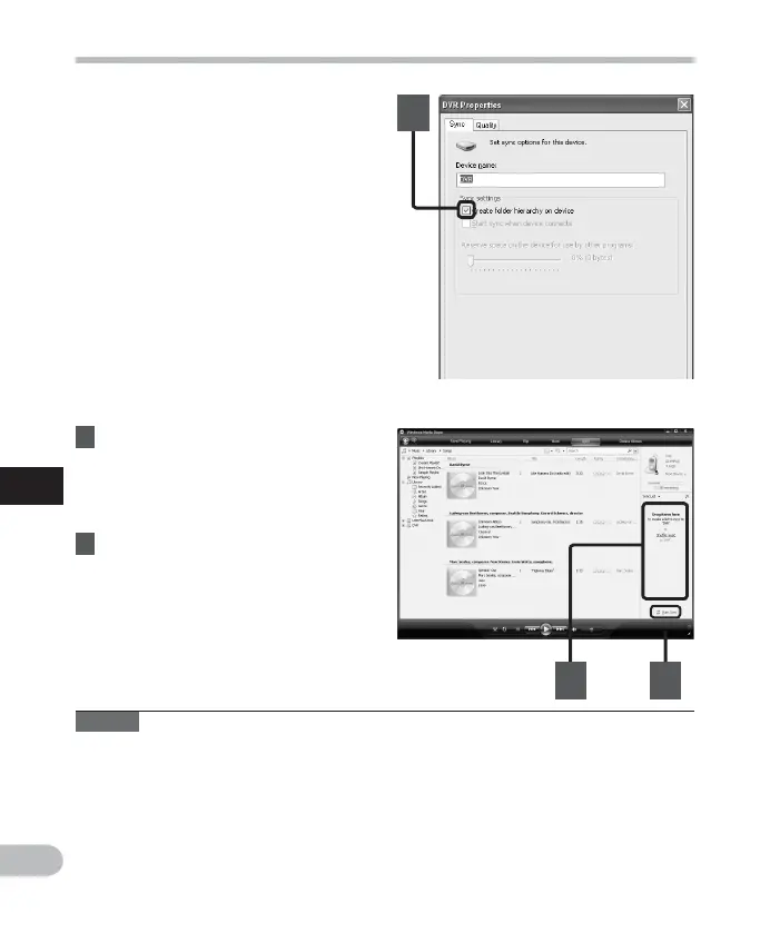 • To transfer the les by using Windows Media Player 9 or Windows Media Player 10, check
