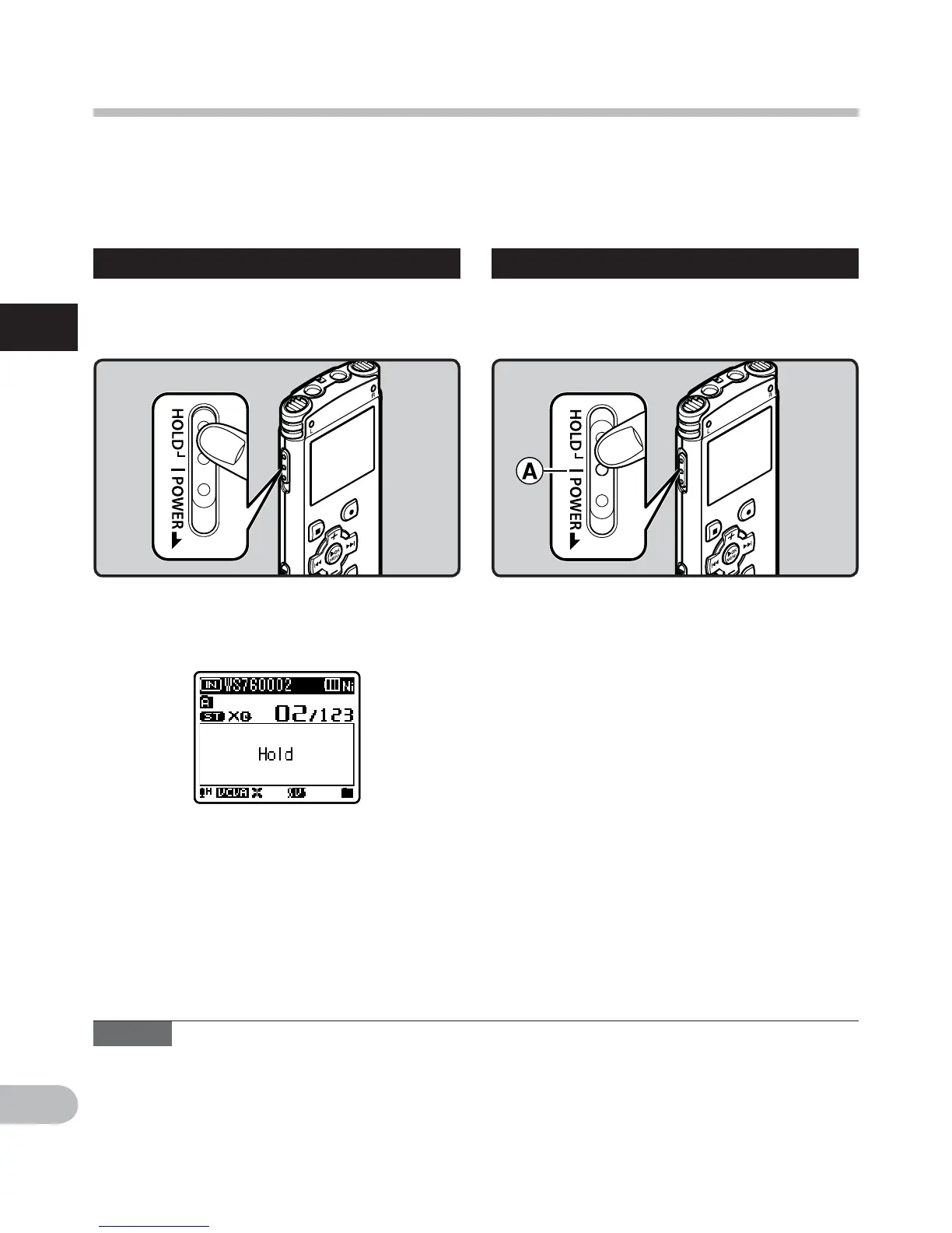 all buttons will be disabled. This feature is useful when the recorder has to be carried in a bag