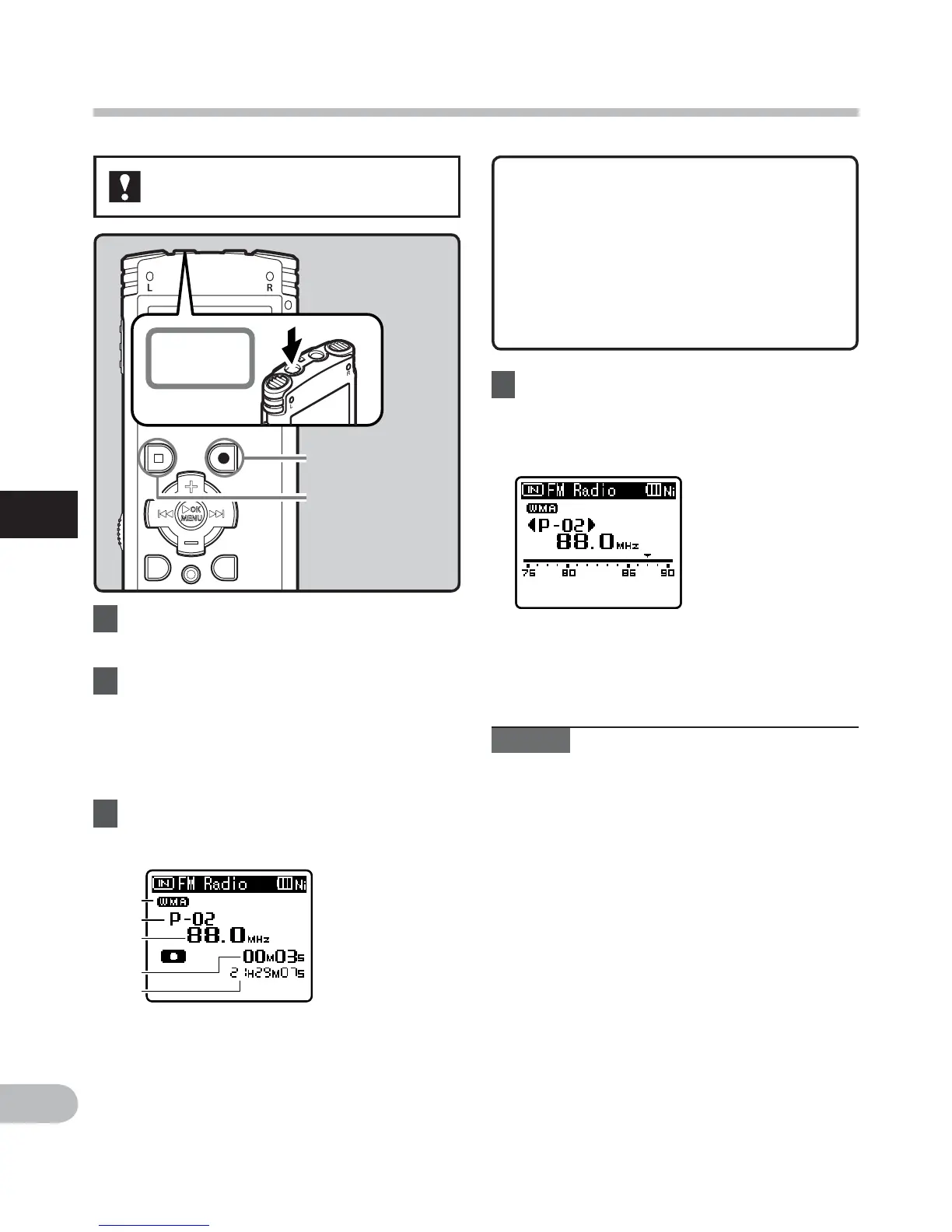 • When recording FM radio, be sure to